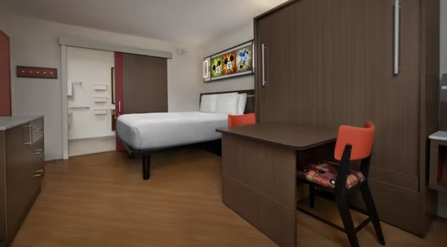 CONS: Only has rooms that sleep up to four max. Only has the bus and one stop which leads to very long lines for prime times. Only has a quick service dining option. Lastly extremely large spread out resort so unless you do not mind 20-30 walks to your room you will want to get a preferred room.
