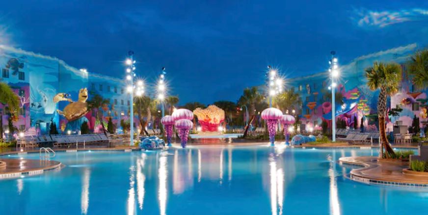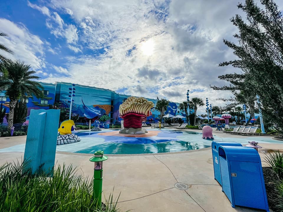PROS: Has not one like most value resorts but TWO choices of transportation to the parks which are the busses and the Skyliner! This resort has is great for large families since the suites offer room for 6! Another great point about this resort is the Disney theming all throughout the resort.