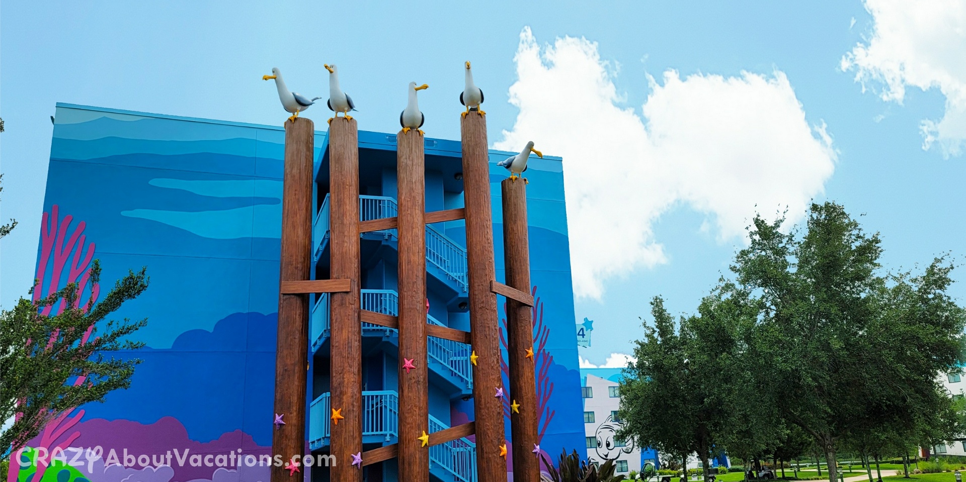 CONS: Only has one bus stop (only way to Magic and Epcot) which leads to very long lines for prime times. Only has a quick service dining option. Lastly extremely large spread out resort so unless you do not mind 20-30 walks to your room you will want to get a preferred room.