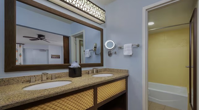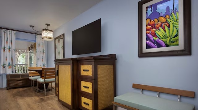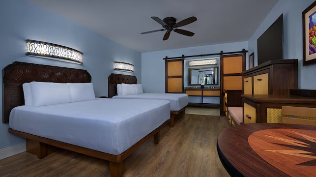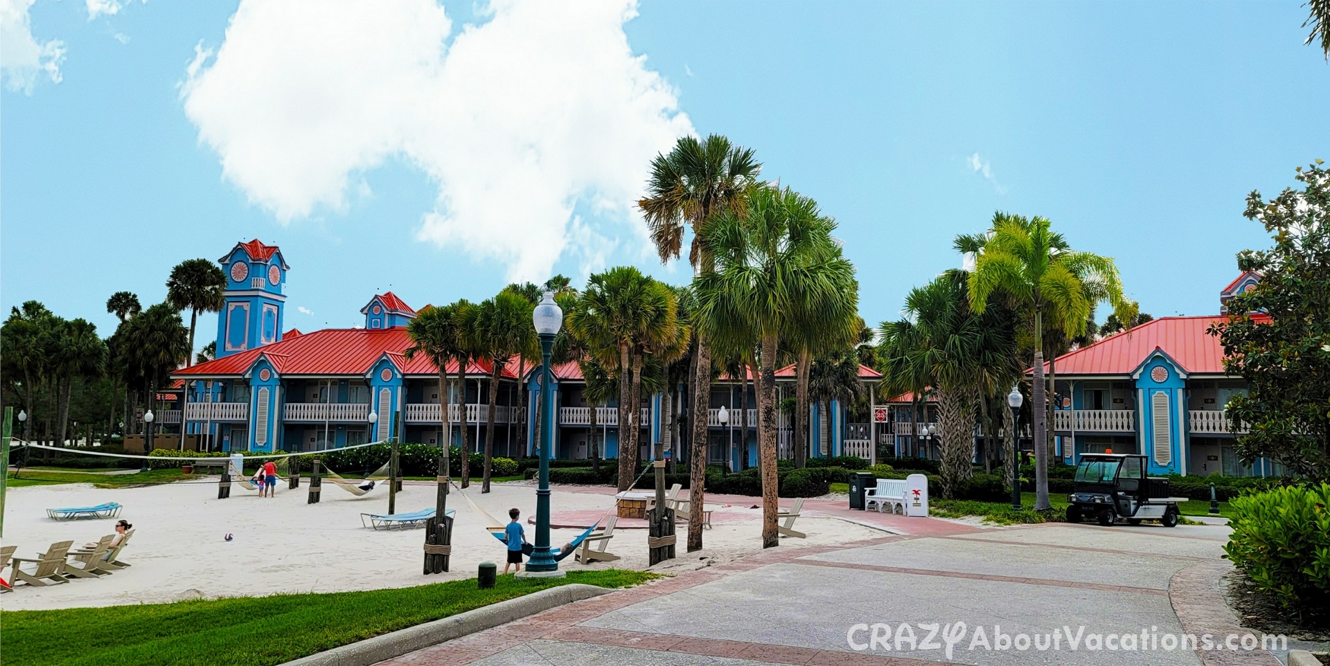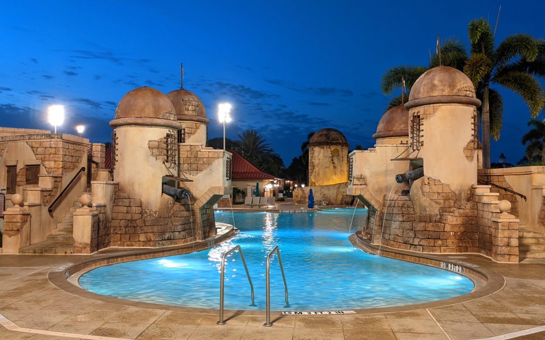 PROS: One of the biggest pros about this resort is the Skyliner transportation option, most moderates only have the bus system. This fun resort has a picturesque Caribbean atmosphere with lots of activities to keep you busy on a resort day. This resort has some of the largest rooms on Disney property. This resort has many bus stops to make getting to the parks a breeze via bus.