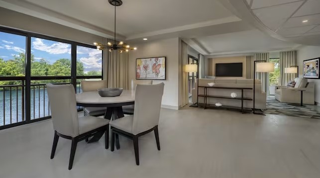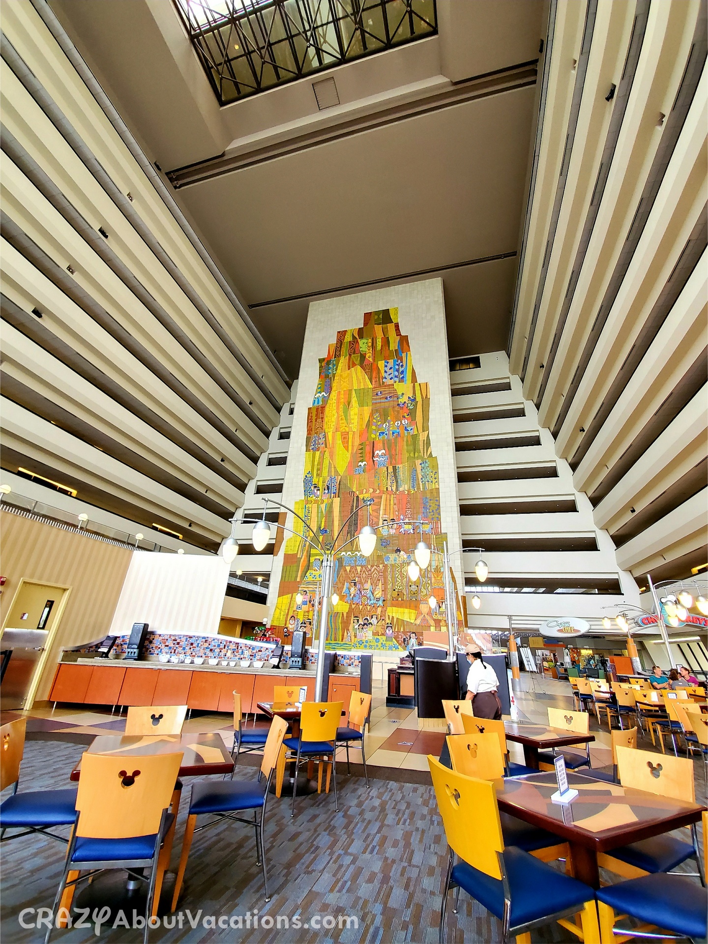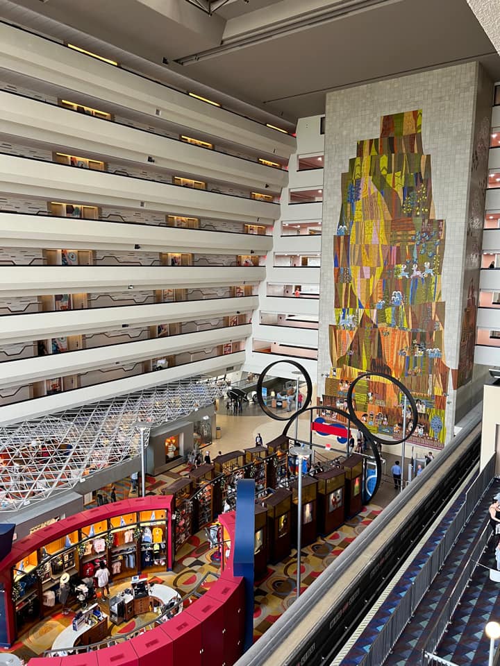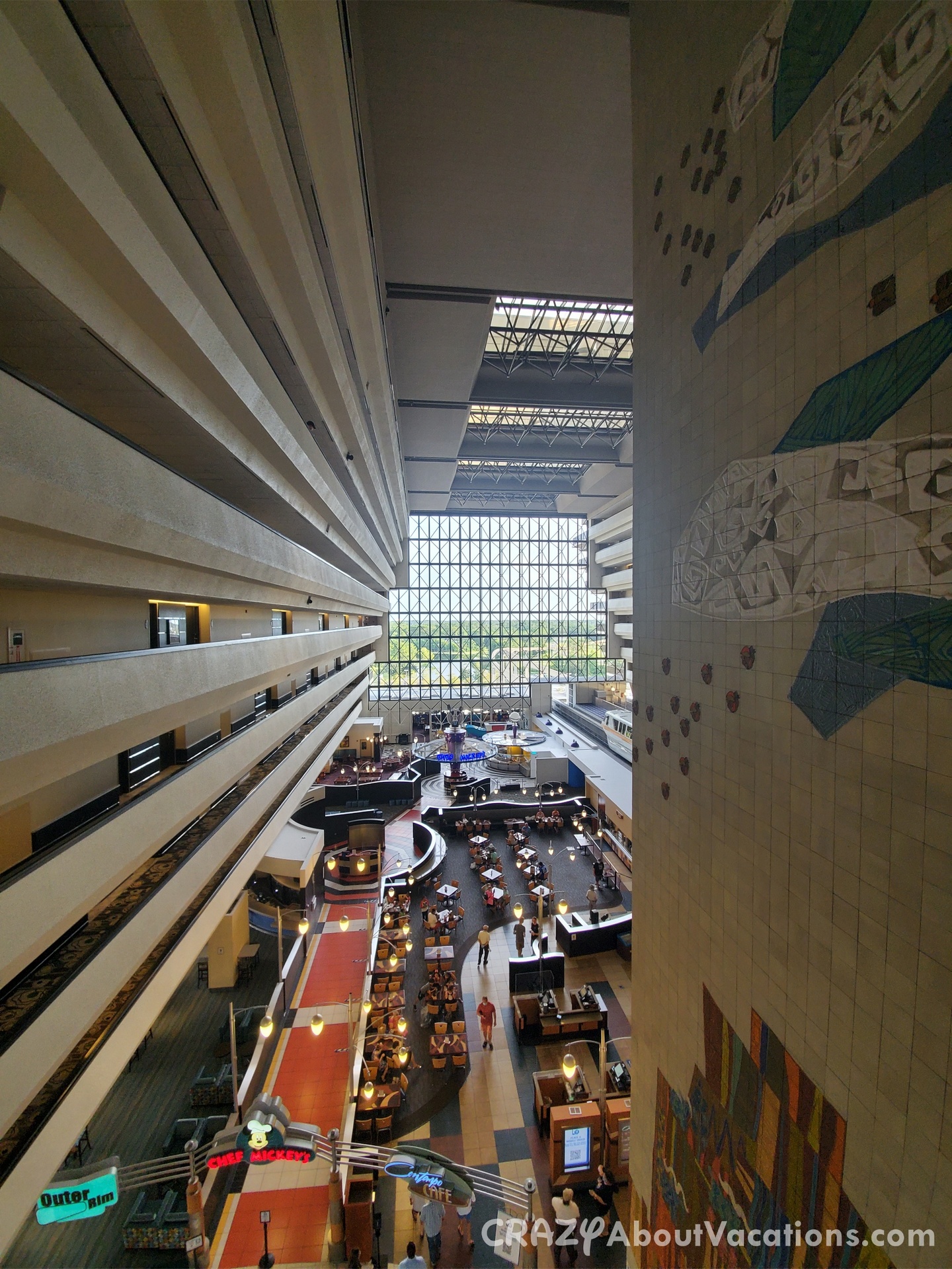 CONS: The resort has a more industrial feel and less Disney. It is humid during the day as you make your way to the lower levels or Monorail if you are staying in the main tower due to the Monorail tracks keeping the resort open to the outdoors. The lobby is very nice but basic... there is not a big awe moment but once you get upstairs with the Monorail riding through the resorts center there are plenty of awe moments.