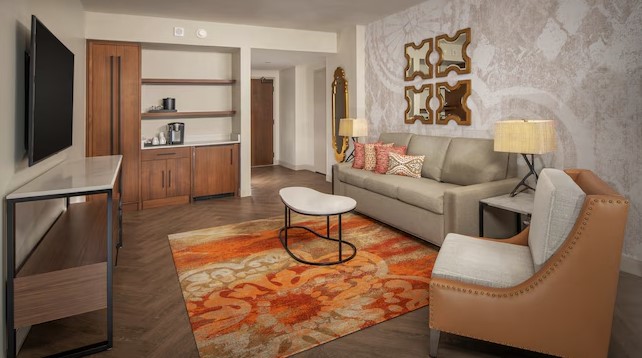 PROS: Stunning grand lobby, has a great pool, sooooo much to do for those wanting a resort day, has the very highly rooftop restaurant Toledo, lots of bus stops for easy park access, and . There are 4 major themes of Coronado. You have the main Tower which is more of a modernized Spanish theme, then you have the outer buildings. Ranchos have more neutral color schemes and draw inspiration from southwestern cattle ranches. Cabanas are more colorful, and are designed to evoke the feel of Mexican beach resorts. Casitas are more urban, with Spanish architecture similar to what exists in Southwestern cities.