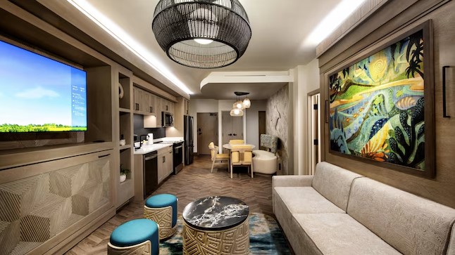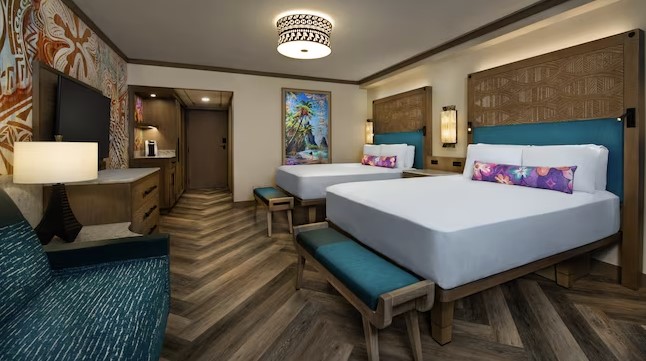 PROS: Stunning grand lobby, voted one of the best on site pools, has the only character dining location (Ohana) with Stitch and Lilo. One of the most requested resorts on Disney property. Is right by Magic Kingdom and one of the few stops on the Monorail! The vibe at Polynesian is very laid back and the entire property is stunning with views of Magic Kingdom and the lake. Hands down this resort is a top contender as far as the best locations to eat at and late hours for ordering room service. Some of the eateries everyone loves is Ohana, Trader Sam’s Grog Grotto, and Kona Cafe which offers some of the best sushi. Last pro we are going to mention is that it was just renovated 2023/2024 and offers the brand new Polynesian Tower location.