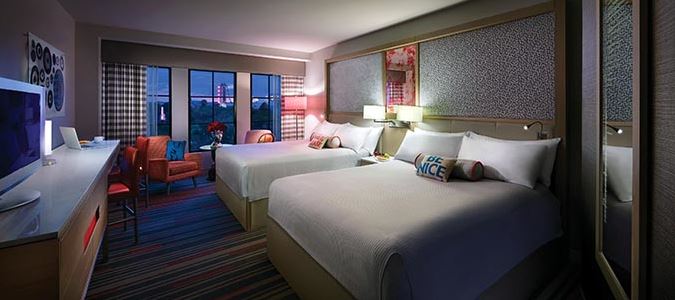 PROS: Is the closest hotel to the parks with only a 5 minute walk! Comes with FREE Express Passes, early park admission, priority seating at many restaurants throughout Universal Orlando, and they offer carry free shopping (anything you buy in the parks/City Walk can be delivered to your room vs you carrying it around all day).