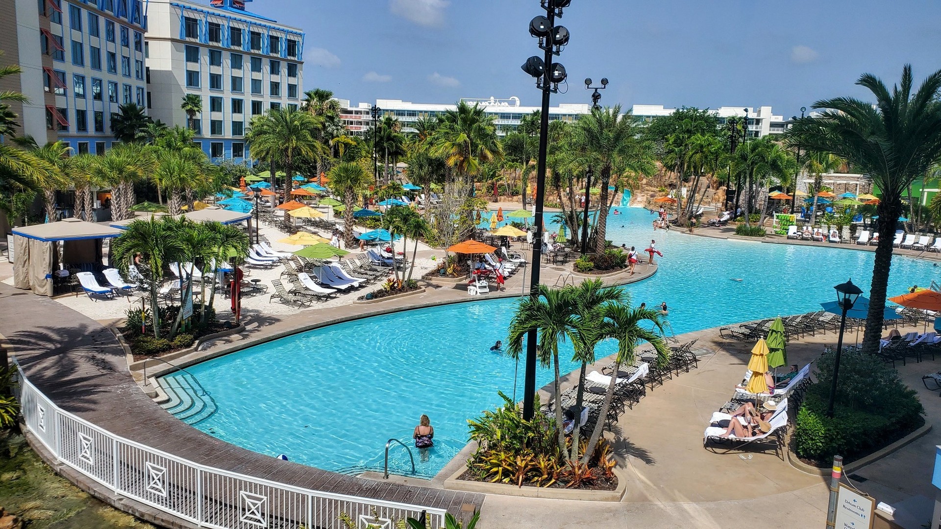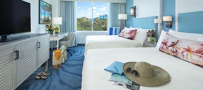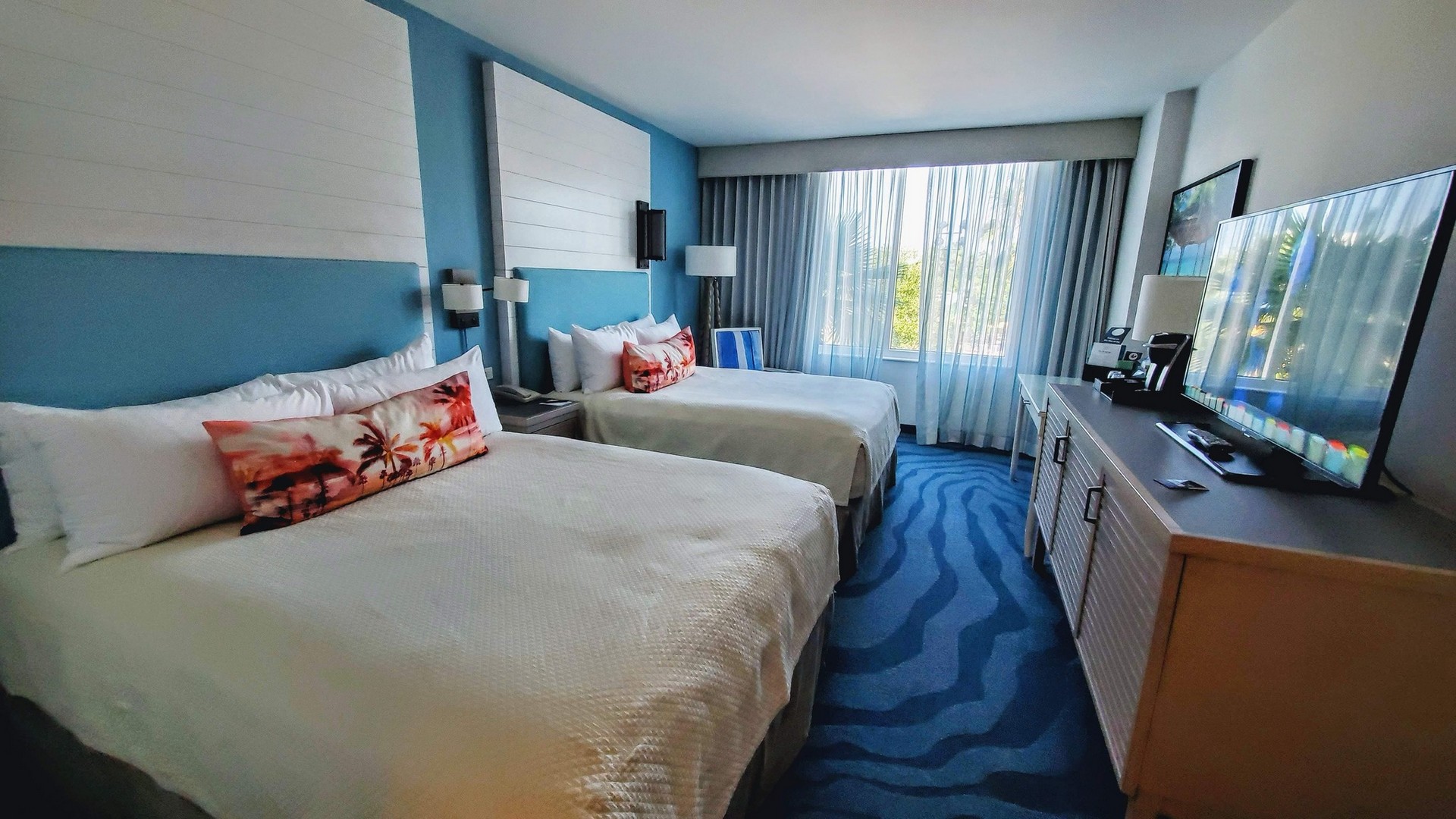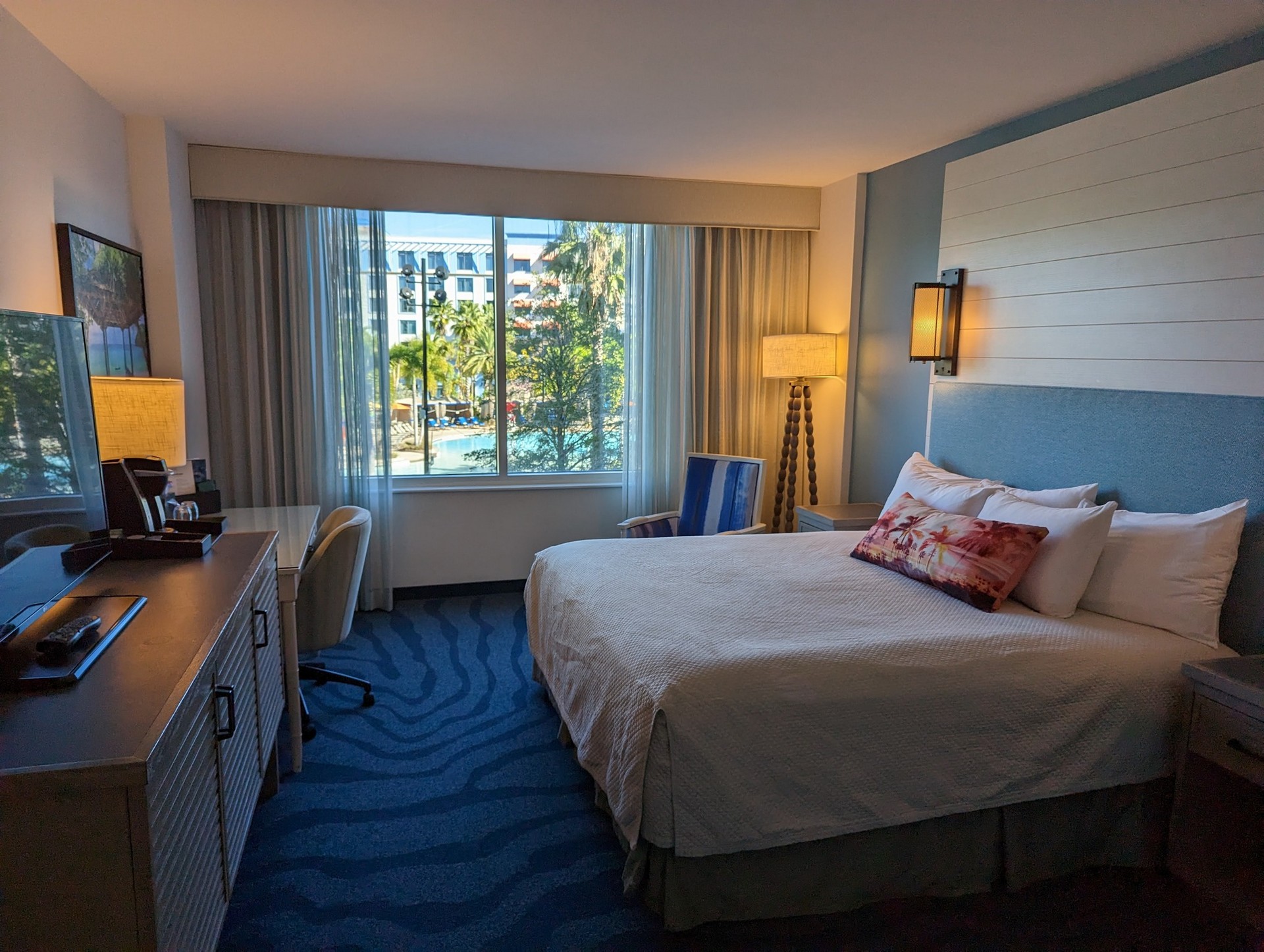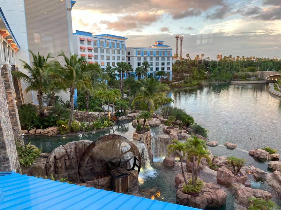 PROS: Super fun grand lobby, steps away from Volcano Bay water park, extremely comfortable beds, great price point, comes with early park admission, and they offer carry free shopping (anything you buy in the parks/City Walk can be delivered to your room vs you carrying it around all day).