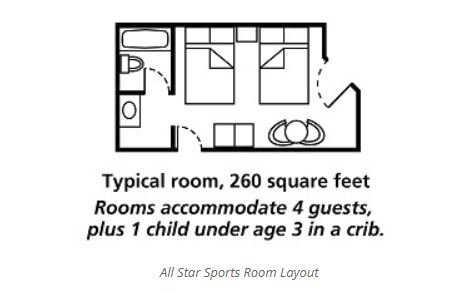 CONS: Only has rooms that sleep up to four max. Only has the bus and one stop which leads to very long lines for prime times. Only has a quick service dining option. Lastly extremely large spread out resort so unless you do not mind 20-30 walks to your room you will want to get a preferred room.