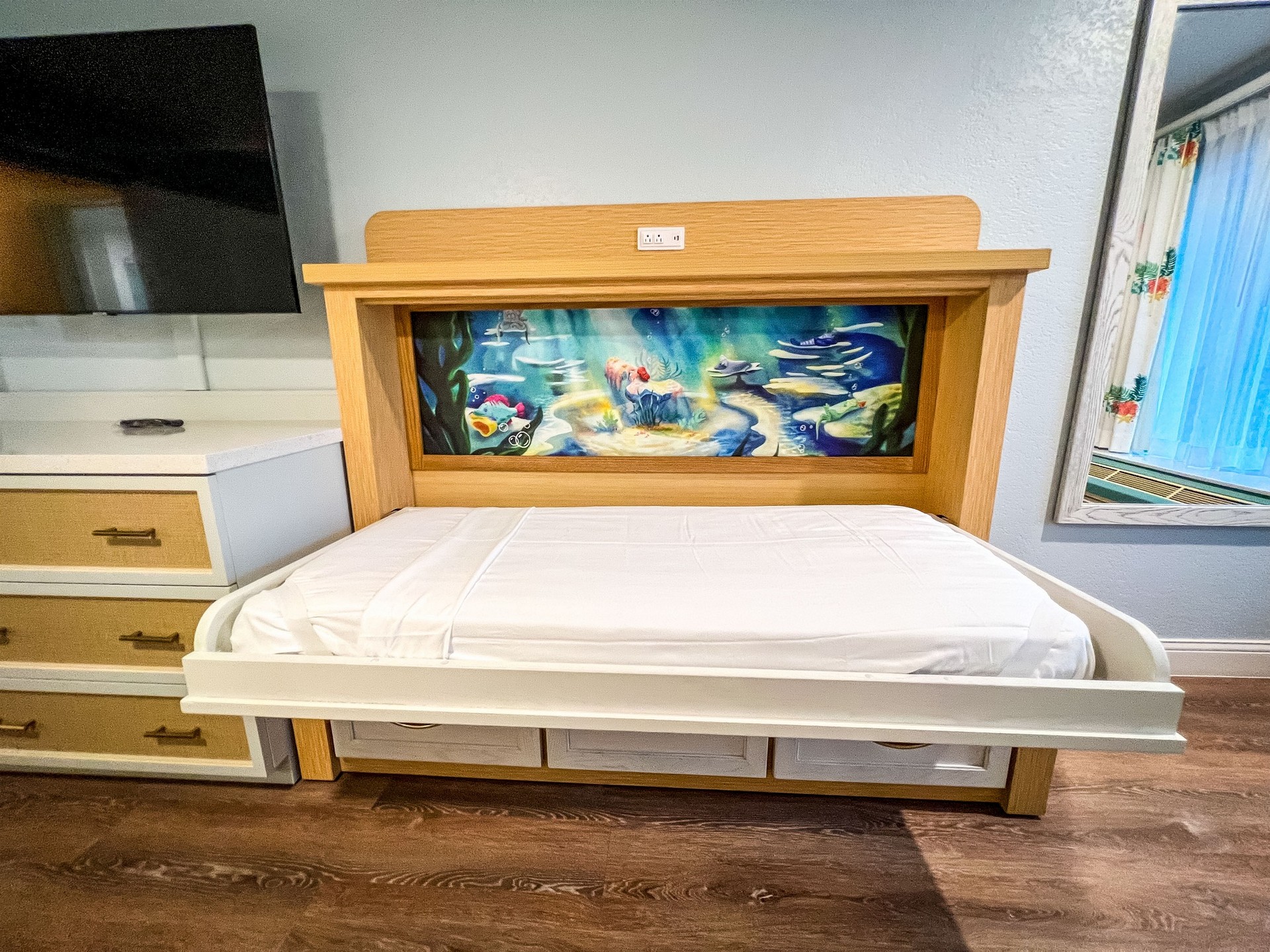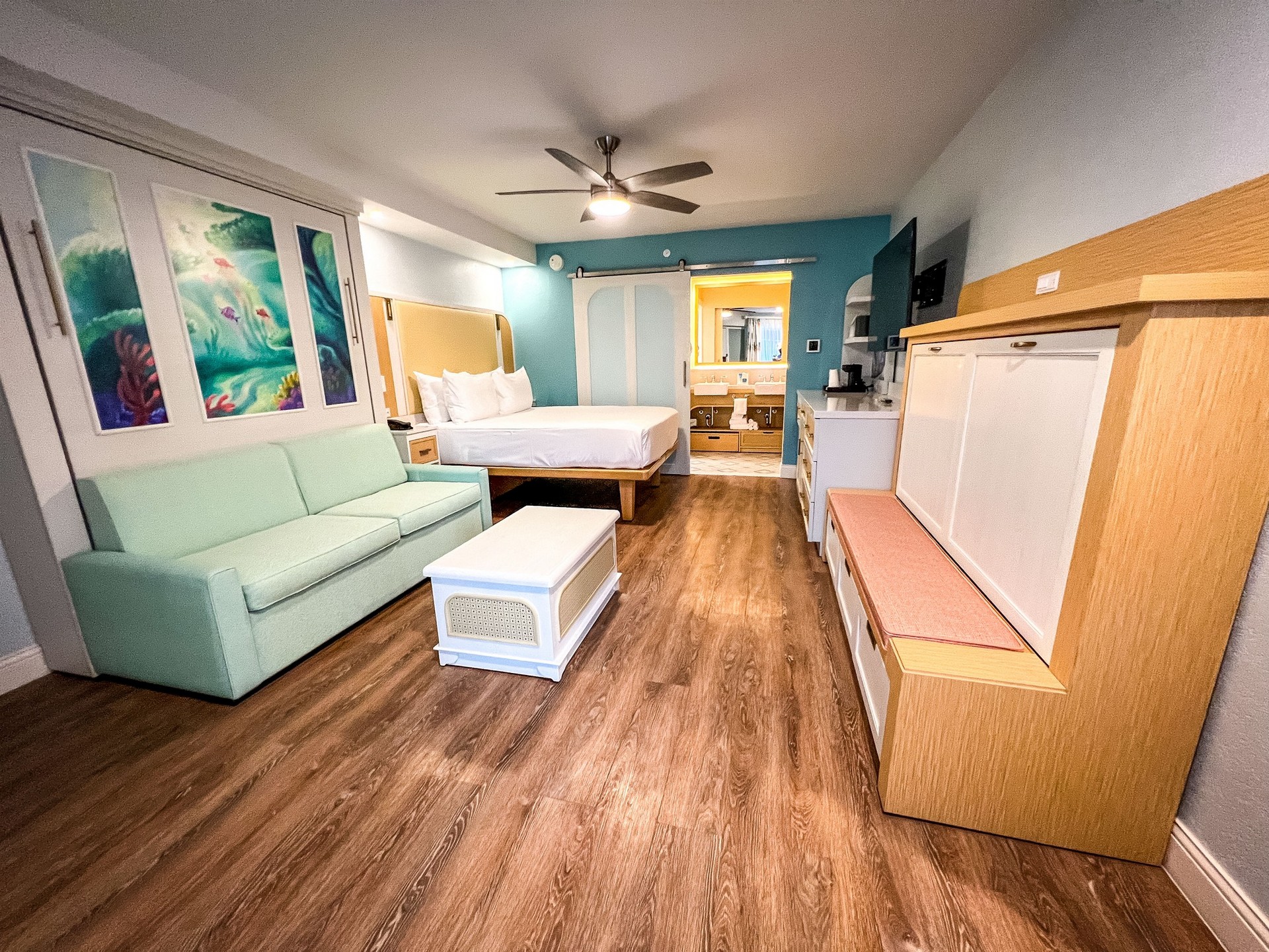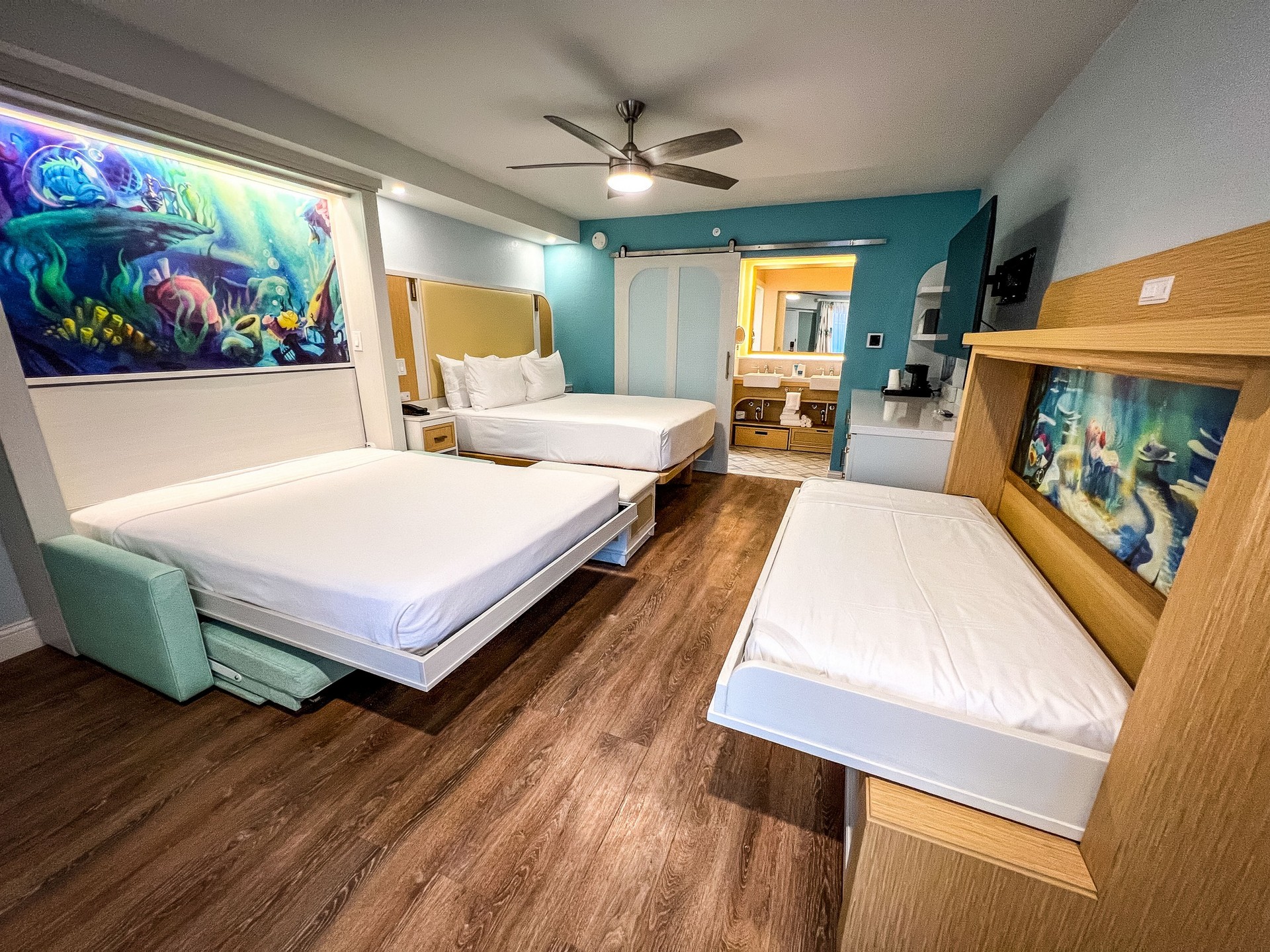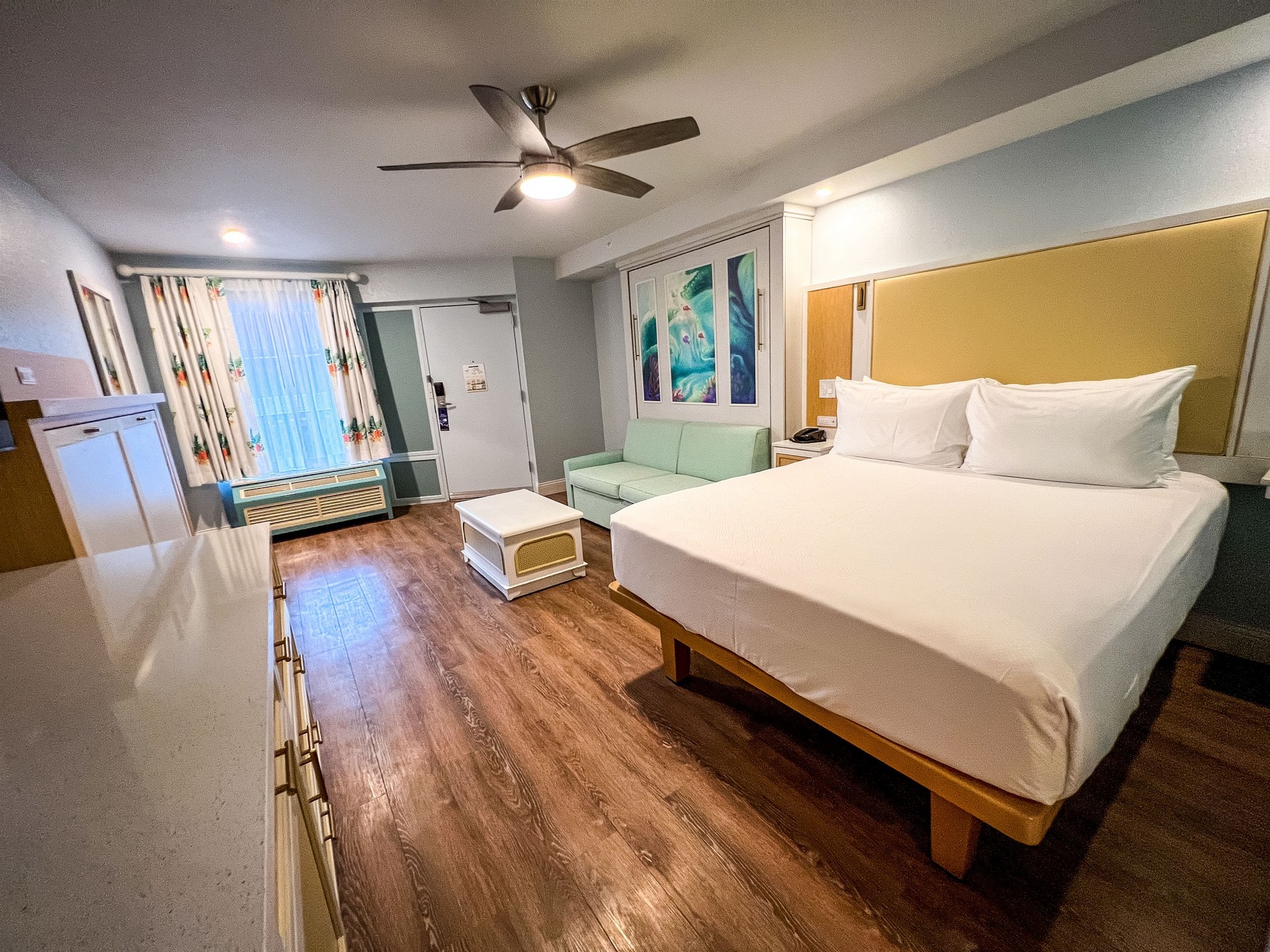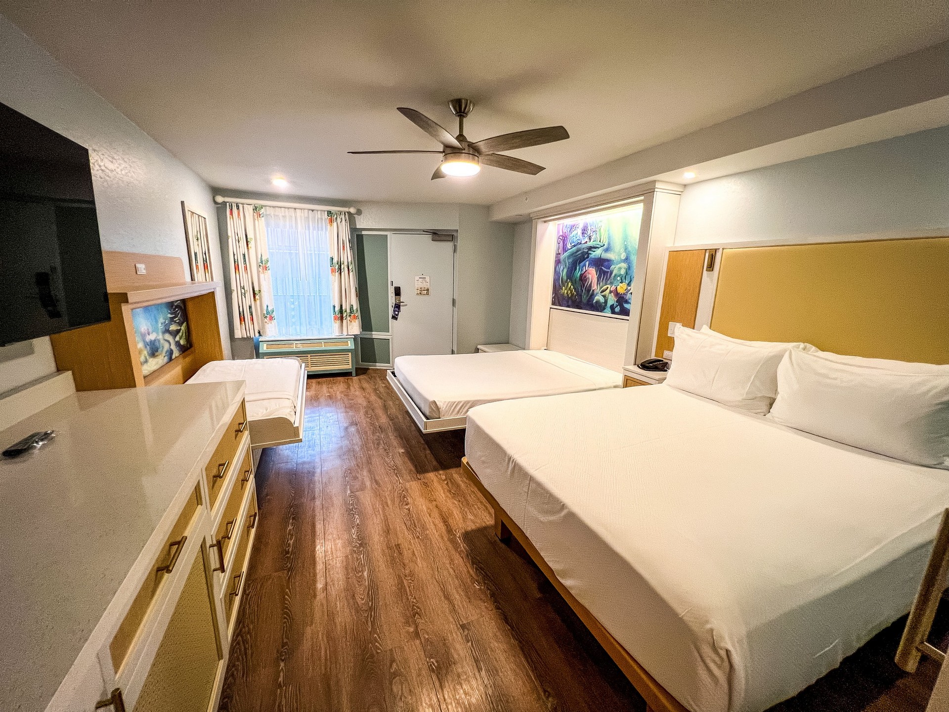 CONS: This resort is massive so depending on your location it can be a 30 minute walk from your room to the lobby or to the Skyliner station. Mermaid rooms are the furthers from the lobby with almost a 25 minute walk.