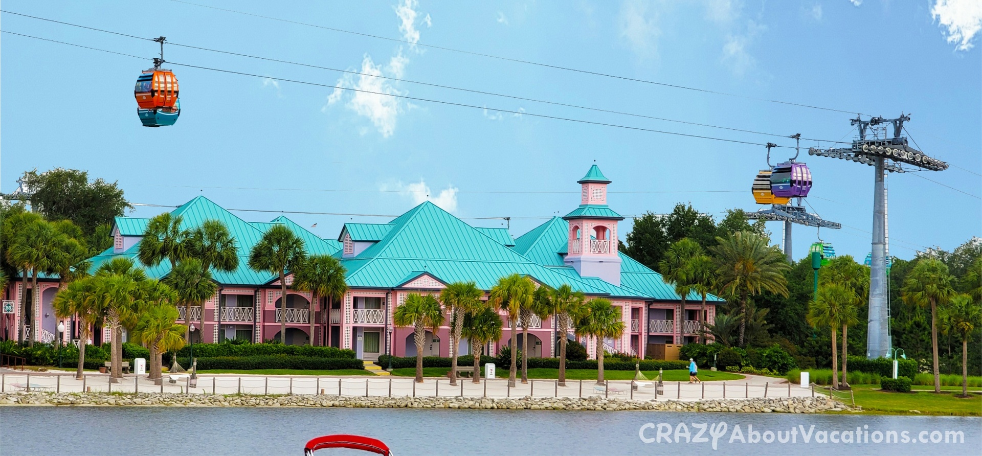 PROS: One of the biggest pros about this resort is the Skyliner transportation option, most moderates only have the bus system. This fun resort has a picturesque Caribbean atmosphere with lots of activities to keep you busy on a resort day. This resort has some of the largest rooms on Disney property. This resort has many bus stops to make getting to the parks a breeze via bus.