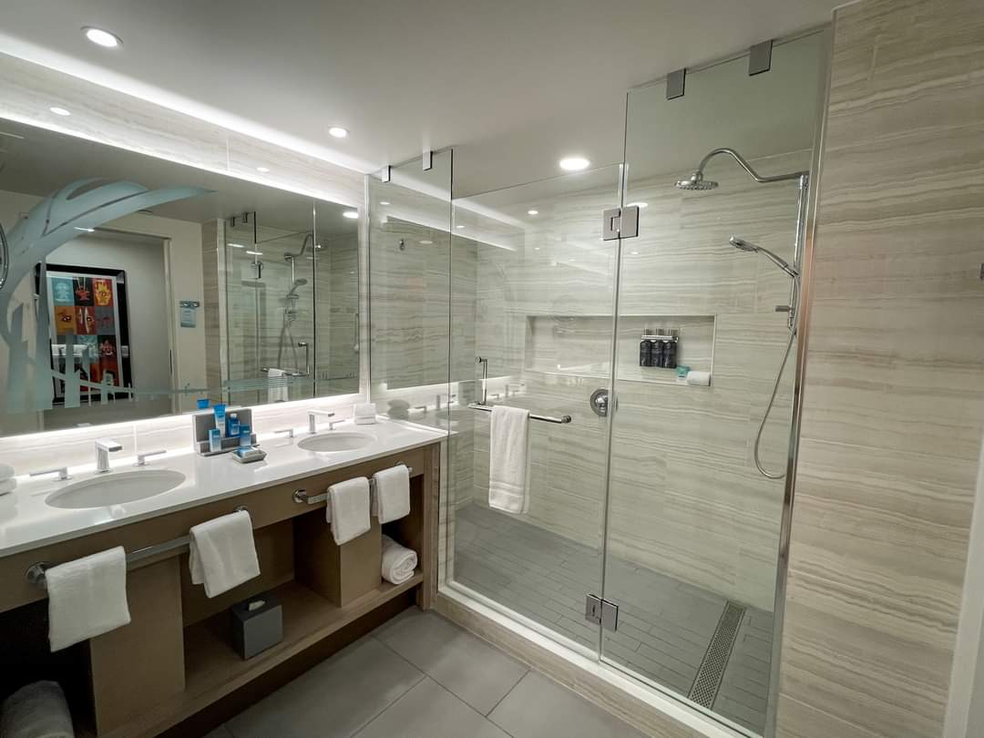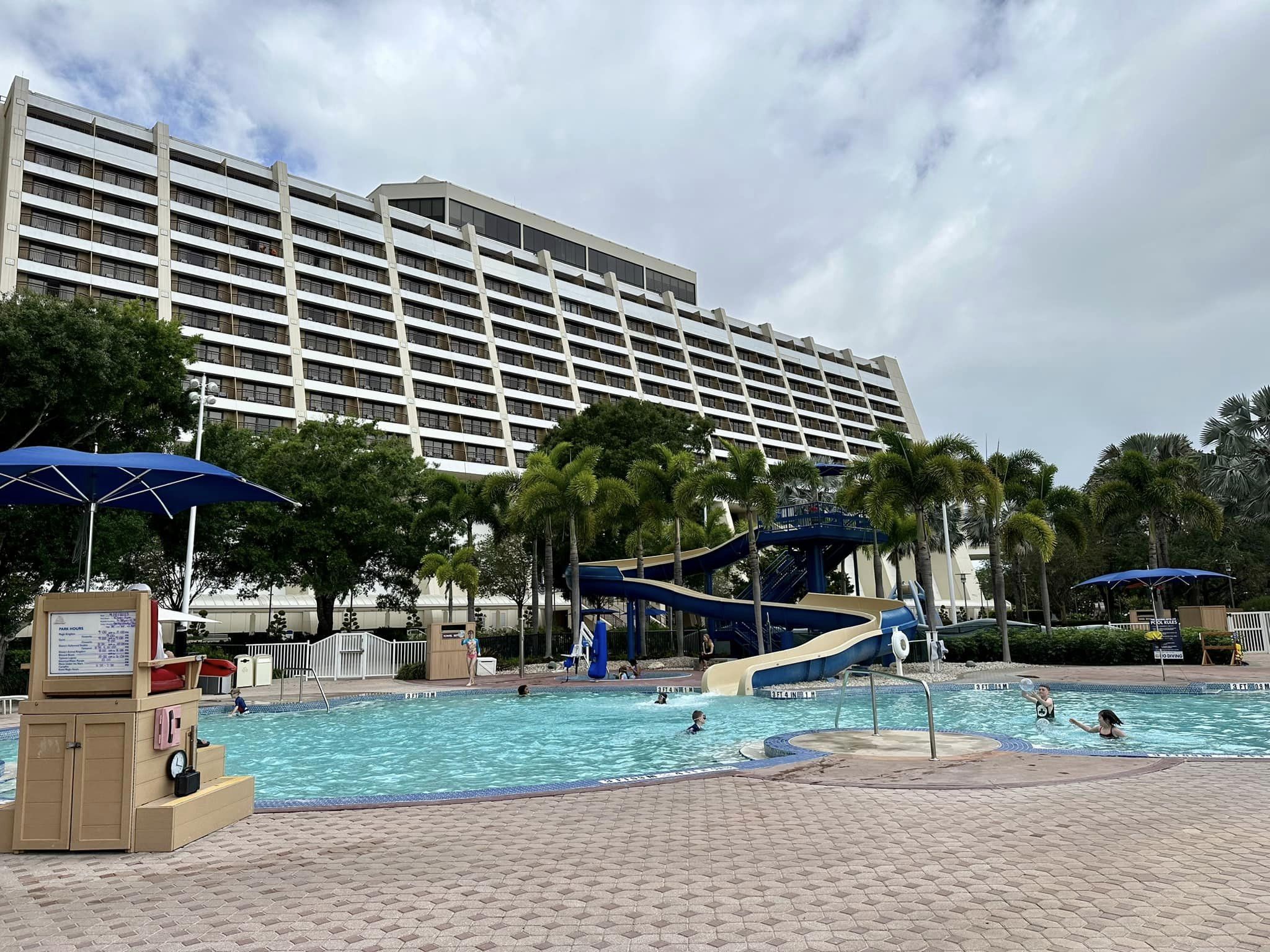 CONS: The resort has a more industrial feel and less Disney. It is humid during the day as you make your way to the lower levels or Monorail if you are staying in the main tower due to the Monorail tracks keeping the resort open to the outdoors. The lobby is very nice but basic... there is not a big awe moment but once you get upstairs with the Monorail riding through the resorts center there are plenty of awe moments.