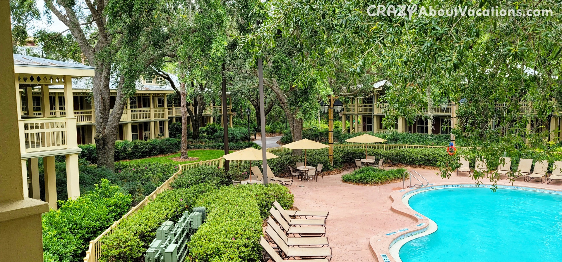 PROS: Very small property so bus stops are fast and getting to the parks is pretty easy. Has both a quick service and sit down dining location. The property is green and lush in all directions and the buildings are not too far from the lobby/restaurants.