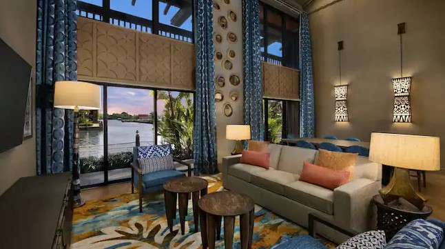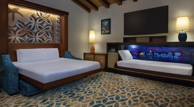 Stunning grand lobby, voted one of the best on site pools, has the only character dining location (Ohana) with Stitch and Lilo. One of the most requested resorts on Disney property. Is right by Magic Kingdom and one of the few stops on the Monorail! The vibe at Polynesian is very laid back and the entire property is stunning with views of Magic Kingdom and the lake. Hands down this resort is a top contender as far as the best locations to eat at and late hours for ordering room service. Some of the eateries everyone loves is Ohana, Trader Sam’s Grog Grotto, and Kona Cafe which offers some of the best sushi. Last pro we are going to mention is that it was just renovated 2023/2024 and offers the brand new Polynesian Tower location.